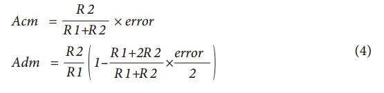 根據(jù)等式3,共模增益(Acm)和差分增益(Adm)可定義為: