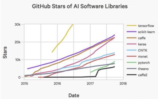 這里主要參考GitHub項目:TensorFlow和 Scikit-Learn等AI和ML(機(jī)器學(xué)習(xí))軟件包被收藏(star)的次數(shù)飆升。