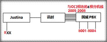最近,基于顧客需求,justINA嘗試了與純國產(chǎn)模擬PBX國威進行了對接。一個是IP設備,一個是傳統(tǒng)PBX設備,那一定要有個中間設備來充當橋梁。因此我們"邀請"了迅時的8O口網(wǎng)關來充當"橋梁",將justINA與國威機器進行了對接。