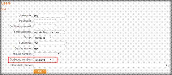 為554分機號指定出局外線;配置完成后,當國威號碼呼叫