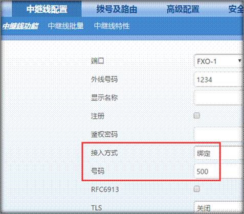 每個端口接入方式:綁定,號碼:500(前臺號碼)