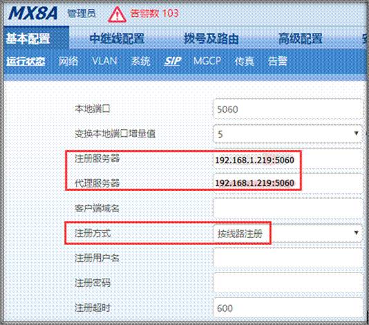 SIP服務器:192.168.1.219: 5060
