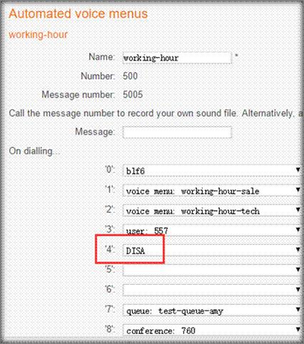如上配置后國威分機8005呼叫2005會聽到前臺音,然后選擇DISA按鍵如4;會聽到長的嘟聲,此時按下密碼78#;會再次聽到長的嘟聲,進而輸入相應的號碼,從而可以進行外呼。