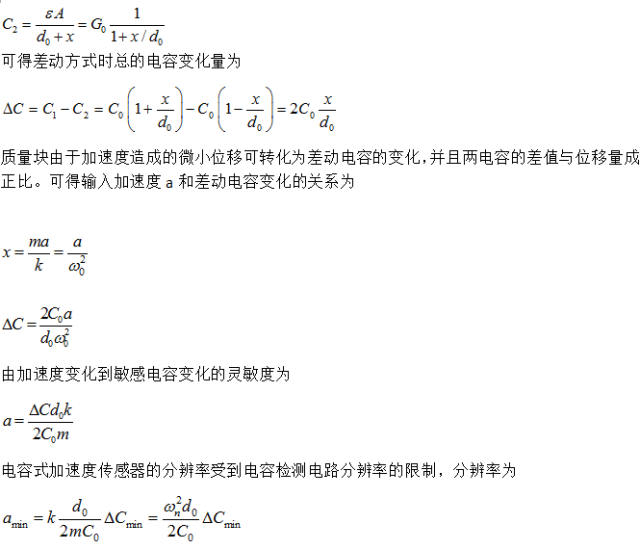 電容式加速度傳感器是基于電容原理的極距變化型的電容傳感器,其中一個電極是固定的,另一變化電極是彈性膜片。彈性膜片在外力(氣壓、液壓等)作用下發(fā)生位移,使電容量發(fā)生變化。這種傳感器可以測量氣流(或液流)的振動速度(或加速度),還可以進一步測出壓力。