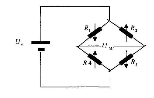 電橋采用恒壓源供電,橋壓為。設、為正應變電阻,為負應變電阻,則電橋的輸出表達式為: