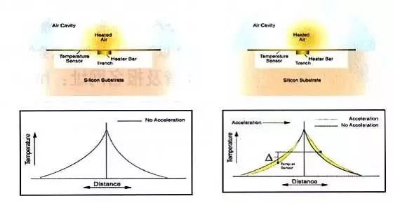 熱對流加速度的原理與其他加速度計有根本上的區(qū)別,其他加速度計的原理都是建立在一個二階系統(tǒng)的基礎之上,而熱對流加速度計采用的是完全不同的原理。