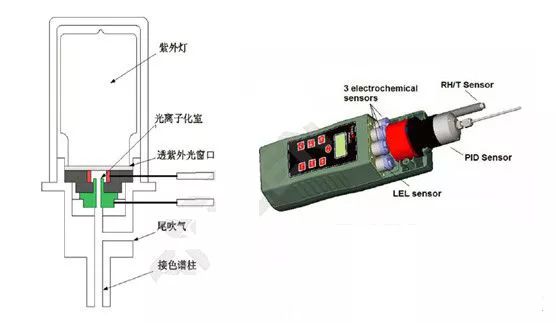 PID由紫外光源和氣室構(gòu)成。紫外發(fā)光原理與日光燈管相同,只是頻率高,能量大。被測氣體到達(dá)氣室后,被紫外燈發(fā)射的紫外光電離產(chǎn)生電荷流,氣體濃度和電荷流的大小正相關(guān),測量電荷流即可測得氣體濃度。