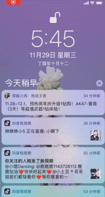 這個(gè)很簡(jiǎn)單,只需要下拉通知欄,長(zhǎng)按(3D Touch)通知右側(cè)的“X”,調(diào)出【清除所有通知】即可。