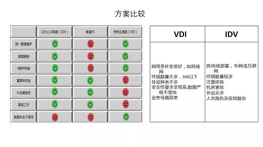 鞏天寧在《桌面虛擬化的進(jìn)展》主旨演講中重點(diǎn)講解了瘦終端和胖終端兩種方案。其中,瘦終端方案(VDI)即虛擬桌面基礎(chǔ)架構(gòu),部署耗時(shí)短、能耗低、維護(hù)簡(jiǎn)單,每臺(tái)云終端的功率在15W-25W之間,系統(tǒng)、軟件僅在服務(wù)器上安裝即可,升級(jí)也只需在服務(wù)器上操作,所有客戶端的運(yùn)算放在服務(wù)器上進(jìn)行集中處理,用戶桌面采用瘦客戶端或?qū)S眯⌒徒K端機(jī)的方式,僅負(fù)責(zé)輸入輸出與界面顯示,不參與任何計(jì)算和應(yīng)用,且數(shù)據(jù)安全,具備桌面漫游功能,實(shí)現(xiàn)了資源的靈活分配;胖終端方案(IDV)與瘦終端一樣具備部署耗時(shí)短、能耗低、維護(hù)簡(jiǎn)單、數(shù)據(jù)安全等特點(diǎn)。不同的是,胖終端與傳統(tǒng)PC機(jī)一樣,有全套的環(huán)境,硬件、CDU、磁盤都在上面,虛擬化放在終端本地,簡(jiǎn)化服務(wù)器端,僅做鏡像管理和存儲(chǔ),并支持離線使用。