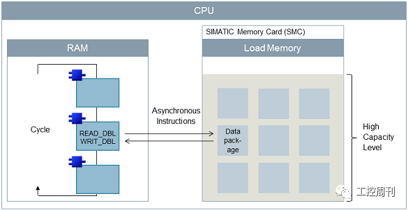 比如,下圖中異步指令 "READ_DBL"和 "WRIT_DBL" 訪問裝載存儲區(qū) (SMC)。存儲卡SMC已達到自己的存儲極限,這會增加斷電時對于數(shù)據(jù)一致性保護的管理負荷,導致對存儲卡讀寫性能的損失,然后引起循環(huán)周期增加。