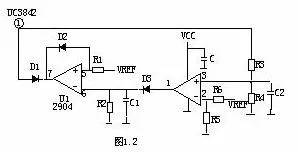 當(dāng)輸出短路,UC3842①腳電壓上升,U1③腳電位高于②腳時(shí),比較器翻轉(zhuǎn)①腳輸出高電位,給C1充電,當(dāng)C1兩端電壓超過⑤腳基準(zhǔn)電壓時(shí)U1⑦腳輸出低電位,UC3842①腳低于1V,UCC3842停止工作,輸出電壓為0V,周而復(fù)始,當(dāng)短路消失后電路正常工作。R2、C1是充放電時(shí)間常數(shù),阻值不對時(shí)短路保護(hù)不起作用。
