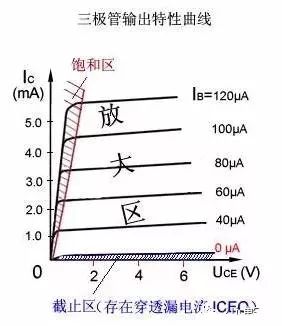 當(dāng)IB很大時(shí),IC變得很大,不能繼續(xù)隨IB的增大而增大,三極管失去放大功能,表現(xiàn)為開關(guān)導(dǎo)通。