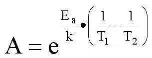 加速試驗(yàn)的加速因子,一般遵循阿累尼烏斯定律: