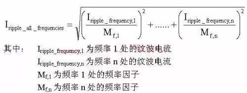 3,紋波電流,這個問題比較復(fù)雜,因?yàn)殚_關(guān)電源中,紋波電流的頻譜是非常豐富的,所以必須把紋波電流折算一下: