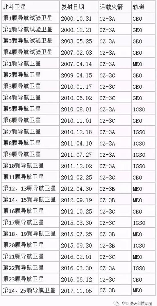 北斗衛(wèi)星發(fā)射記錄一覽表