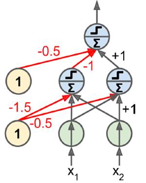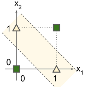 defheaviside(z): return(z >=0).astype(z.dtype)defsigmoid(z): return1/(1+np.exp(-z))#做了多層activation,手工配置權(quán)重defmlp_xor(x1, x2, activation=heaviside): returnactivation(-activation(x1 + x2 -1.5) + activation(x1 + x2 -0.5) -0.5)