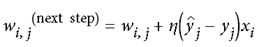 采用Hebb準(zhǔn)則,下一個(gè)權(quán)重調(diào)整方法參考當(dāng)前權(quán)重和訓(xùn)練效果