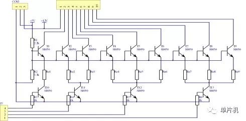 所以就得幾個led串聯(lián)起來使用。這里每6支l同樣顏色的ed作為一組,一共分成了九組。這時再用5V電源驅(qū)動顯然是玩不轉(zhuǎn)的,因為6個led串聯(lián),總的壓降已經(jīng)十分可觀。