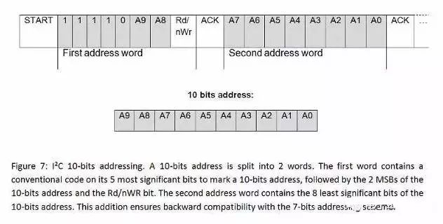 第二,第一個字節(jié)前五位最高有效位用作10位地址標(biāo)識,約定是“11110”。