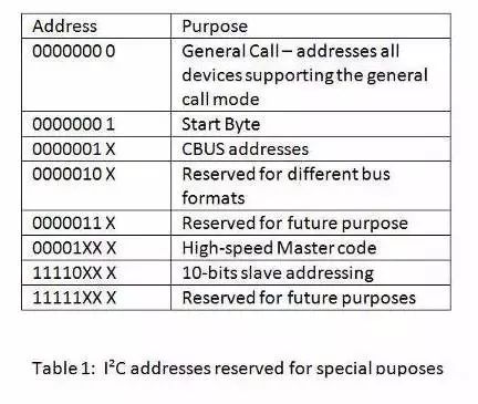 除了10位地址標(biāo)識,標(biāo)準(zhǔn)還預(yù)留了一些地址碼用作其它用途,如下表: