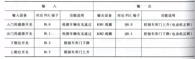 車庫自動(dòng)門控制需用到的輸入/輸出設(shè)備和對應(yīng)的PLC端子見下表: