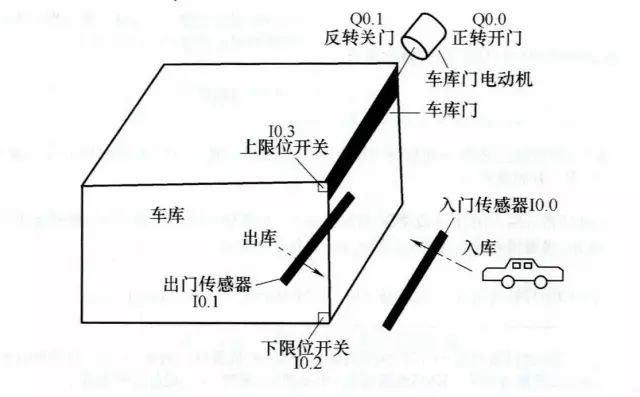 系統(tǒng)要求車庫門在車輛進(jìn)出時(shí)能自動(dòng)打開關(guān)閉,車庫門控制結(jié)構(gòu)如下圖所示。