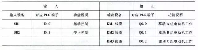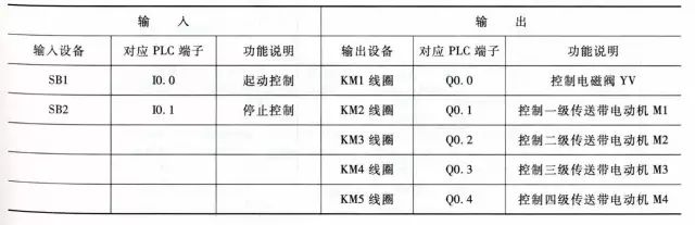 多級(jí)傳送帶控制需用到的輸入/輸出設(shè)備和對應(yīng)的PLC端子見下表。