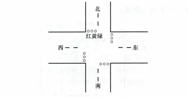 系統(tǒng)要求用兩個(gè)按鈕來控制交通信號(hào)燈工作,交通信號(hào)燈排列如下圖所示。