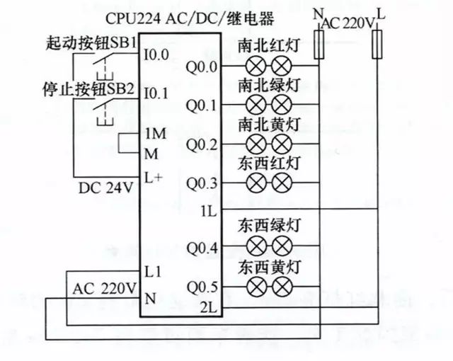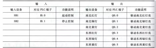 交通信號(hào)燈控制需用到的輸入/輸出設(shè)備和對應(yīng)的PLC端子見下表。