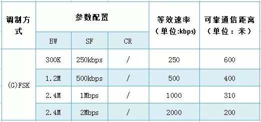 測試方法:使用2套收發(fā)器,一收一發(fā),離地1.6米放置,分別測試LoRa24、FLRC、GFSK三種調(diào)制模式下不同速率的可靠通信距離
