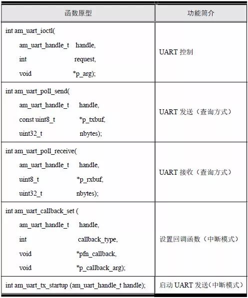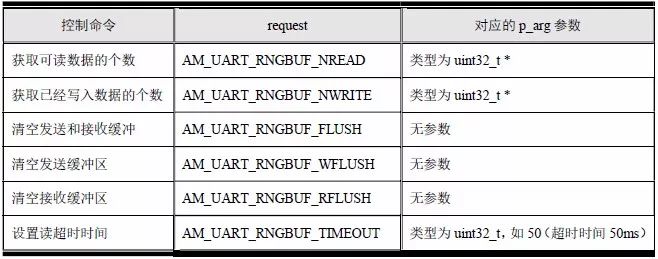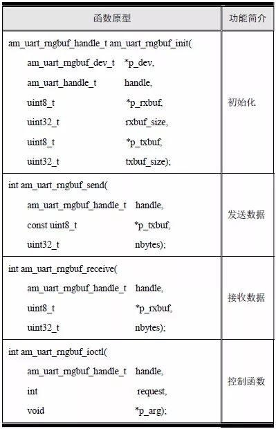 表5.29 帶緩沖區(qū)的UART 通用接口函數(shù)(am_uart_rngbuf.h)