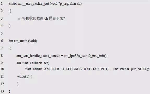 以提交一個(gè)已經(jīng)接收到的字符為例,pfn_callback 參數(shù)的類型為am_uart_rxchar_put_t: