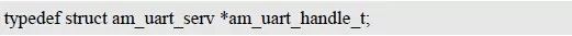這些函數(shù)的返回值均為am_uart_handle_t 類型的UART 實(shí)例句柄,該句柄將作為UART通用接口中handle 參數(shù)的實(shí)參。類型am_uart_handle_t(am_uart.h)定義如下: