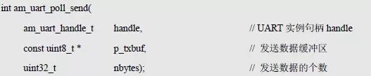 如果以查詢的方式發(fā)送UART 數(shù)據(jù),則該函數(shù)會(huì)等待發(fā)送結(jié)束后返回。其函數(shù)原型為:
