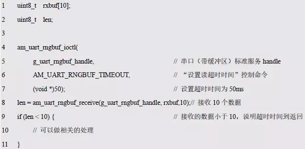 程序清單5.109 am_uart_rngbuf_receive()范例程序