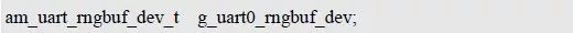 其中, p_dev 為指向am_uart_rngbuf_dev_t 類型的帶緩沖區(qū)的串口實(shí)例指針,在使用時(shí),只需要定義一個(gè)am_uart_rngbuf_dev_t 類型(am_uart_rngbuf.h)的實(shí)例即可: