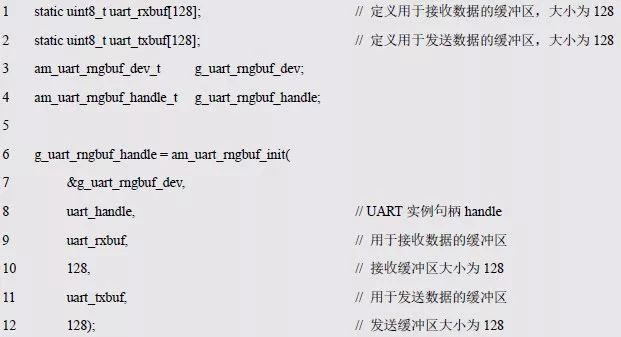 程序清單5.107 am_uart_rngbuf_init()范例程序