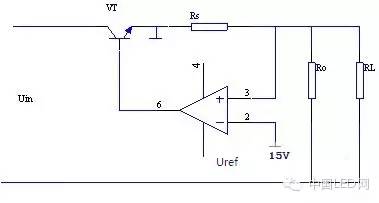 下圖是恒流電源常用電路,其中采樣電阻RS串聯(lián)在功率回路里,作為回路電流的采樣元件。它把回路電流轉(zhuǎn)換成電壓信號,并與基準(zhǔn)電壓Uref在放大器中進(jìn)行比較放大,然后將其送至調(diào)整管VT的基極,驅(qū)動調(diào)整管VT對輸出電流IO變化進(jìn)行補償校正。就可以實現(xiàn)恒流輸出的。