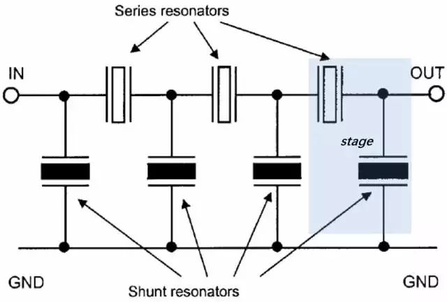 Ladder type(SAW最后也提過(guò))使用的resonator包括串聯(lián)和并聯(lián),一個(gè)串聯(lián)的resonator加一個(gè)并聯(lián)的resonator稱(chēng)為一個(gè)stage,整個(gè)ladder type filter可以由好幾個(gè)stage組成。