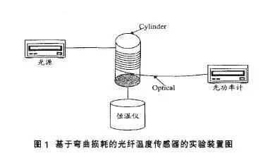 基于彎曲損耗的光纖溫度傳感器利用硅纖芯和塑料包層折射率差隨溫度變化引起光纖孔徑的變化、光纖的突然彎曲引起的局部孔徑的變化的原理測量溫度。烏克蘭采用EBOC生產(chǎn)的多模階躍塑料包層硅纖芯光纖HCN~H,已做出基于彎曲損耗的光纖溫度傳感器,其測溫范圍一30℃~70℃,靈敏度達到O.5℃。