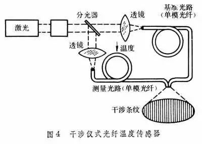 另外一種方法是利用光在光導(dǎo)纖維內(nèi)傳輸?shù)南辔浑S溫度參數(shù)的改變而改變的特點,光信號的相位隨溫度的變化是由于光纖材料的尺寸和折射率都隨溫度改變而引起的。