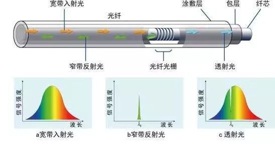 這一傳感機制的好處在于:測量信號不受光源起伏、光纖彎曲損耗、連接損耗和探測器老化等因素的影響;避免了一般干涉型傳感器中相位測量的不清晰和對固有參考點的需要;能方便地使用波分復(fù)用技術(shù)在一根光纖中串接多個布喇格光柵進行分布式測量;很容易埋人材料中對其內(nèi)部的溫度進行高分辨率和大范圍地測量。