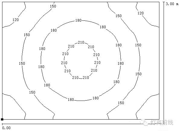 房間:3×4米,高2.8米,墻壁反射系數(shù)50%, 天花板反射系數(shù)70%,地板反射系數(shù)70%,無日光,房
