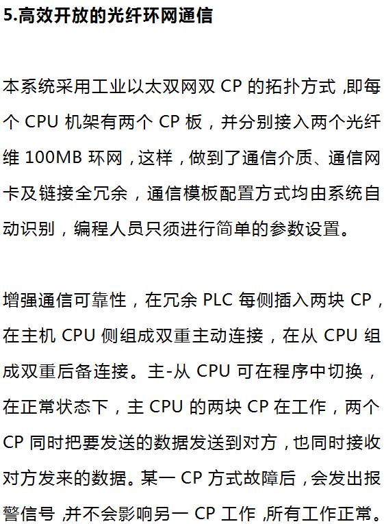 由于S7-417H的CPU是專為冗余系統(tǒng)設(shè)計的,其CPU硬件系統(tǒng)和固化在CPU內(nèi)部的操作系統(tǒng)保證了系統(tǒng)用戶好像面對一個非冗余的單機(jī)系統(tǒng)一樣編程。冗余系統(tǒng)的管理工作完全交給系統(tǒng)自動去完成,換言之,用戶可選軟件包對冗余系統(tǒng)進(jìn)行簡單參數(shù)設(shè)置后,對互為熱備的任何一個CPU下裝程序后,程序?qū)⒆詣涌截惖搅硪粋€CPU。因此,用戶程序可方便地由單機(jī)程序轉(zhuǎn)換成冗余CPU程序,反之亦然。