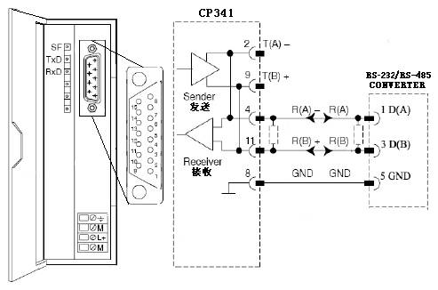 CP341上有三個狀態(tài)指示燈,分別是:SF(RED)表示錯誤狀態(tài);TxD(GREEN)表示數(shù)據(jù)在傳送;RxD(GREEN)表示數(shù)據(jù)在接收。通信正常時為TxD和RxD狀態(tài)燈交替閃爍。