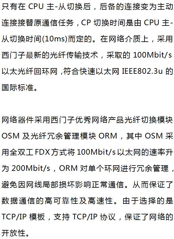 在兩個PROFIBUS-DP網(wǎng)正常工作,但其中一個IM153-3的一個DP口出現(xiàn)故障時,系統(tǒng)并不實行CPU或PROFIBUS-DP網(wǎng)之間的切換。IM153-3會采用另一個DP口通過一條DP網(wǎng)將數(shù)據(jù)送到相應(yīng)的CPU上,并通過光纖熱備線將數(shù)據(jù)由從CPU傳送給主CPU。同時,該DP口的輸出被唯一激活。當(dāng)兩DP網(wǎng)上不同的網(wǎng)段和DP口出故障時,可分別采用另一網(wǎng)段或DP口與CPU通信,大大提高了網(wǎng)絡(luò)可靠性,而不是一個簡單的雙網(wǎng),從而最大程度減少了CPU的切換,大大減少了因CPU切換造成的CPU同步時間,提高了CPU運(yùn)行效率。