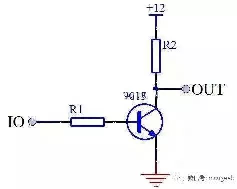 當 IO 口輸出高電平 5V 時,三極管導通,OUT 輸出低電平 0V,當 IO 口輸出低電平時,三極管截止,OUT 則由于上拉電阻 R2 的作用而輸出 12V 的高電平,這樣就實現(xiàn)了低電壓控制高電壓的工作原理。