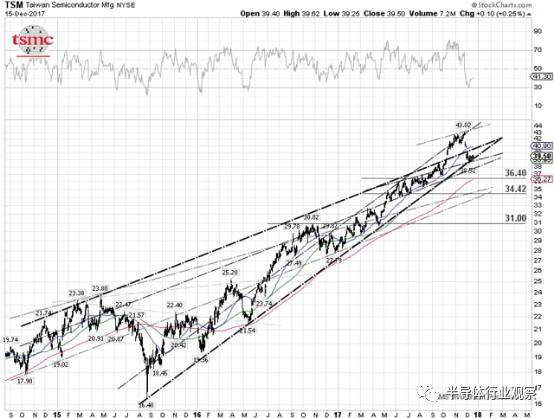 自去年11月半導(dǎo)體股市創(chuàng)下多年以來的高點(diǎn)后,目前英特爾和臺(tái)積(NYSE:TSM)的股票就一直隨著費(fèi)城半導(dǎo)體類股指數(shù)(SOX)日漸下滑,投資者開始擔(dān)心這一波所謂的芯片需求“超級(jí)周期”即將結(jié)束。11月下旬,摩根士丹利將臺(tái)積電及其他芯片制造商的股票評(píng)級(jí)從增持下調(diào)至觀望水平,理由是股價(jià)上漲太多。該公司指出,儲(chǔ)存芯片的價(jià)格壓力正在上升,2019~2020年存在產(chǎn)能增長(zhǎng)超過需求增長(zhǎng)導(dǎo)致供應(yīng)過剩的風(fēng)險(xiǎn)。