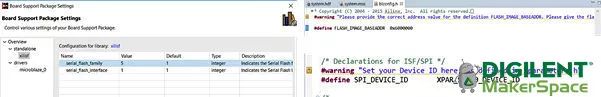 在SDK中,基于導(dǎo)出的硬件設(shè)計(jì)創(chuàng)建一個(gè)新的應(yīng)用工程。在工程創(chuàng)建對(duì)話框,選擇SREC SPI Bootloader模板。這個(gè)選擇會(huì)創(chuàng)建一個(gè)SREC bootloader應(yīng)用,它會(huì)從QSPI Flash中加載主應(yīng)用程序代碼。在構(gòu)建bootloader ELF之前,我們首先要為應(yīng)用軟件定義對(duì)于QSPI基址的地址偏移,在這個(gè)示例中為0x600000。我們?cè)赽lconfig.h中定義這個(gè)偏移量。我們還需要更新SREC Bootloader BSP來(lái)鑒別正確的串口Flash存儲(chǔ)器件。因此重新配置BSP。使用的系列標(biāo)識(shí)號(hào)在BSP libsrc目錄下的xilisf.h中定義。對(duì)于這個(gè)應(yīng)用我們選擇類型5,因?yàn)锳rty板卡使用Micron QSPI器件,它的標(biāo)識(shí)號(hào)即為類型5。