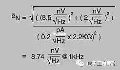• CMOS輸入運(yùn)算放大器的噪聲:噪聲電壓主要由高頻區(qū)通道電阻的熱噪聲及低頻區(qū)的低頻噪聲所造成,CMOS放大器的轉(zhuǎn)角頻率(cornerfrequency)比雙極放大器高,而寬帶噪聲也遠(yuǎn)比雙極放大器高;噪聲電流主要由輸入門極漏電的射擊噪聲所產(chǎn)生,CMOS放大器的噪聲電流遠(yuǎn)比雙極放大器低,但溫度每升高10(C,其噪聲電流便會(huì)增加約40%。